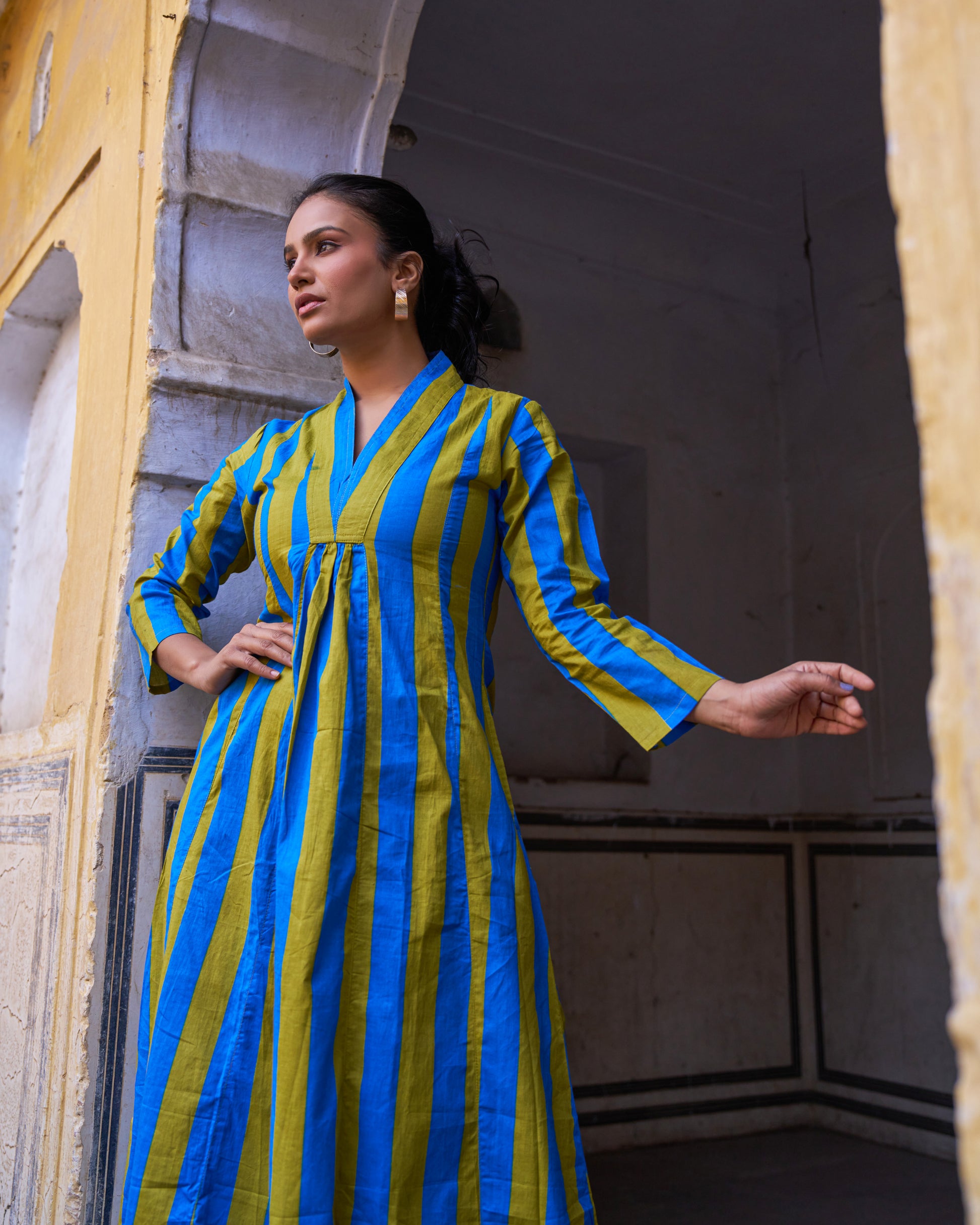 The Saba Dress with a V-Neckline made using soft 60x60 Cotton.